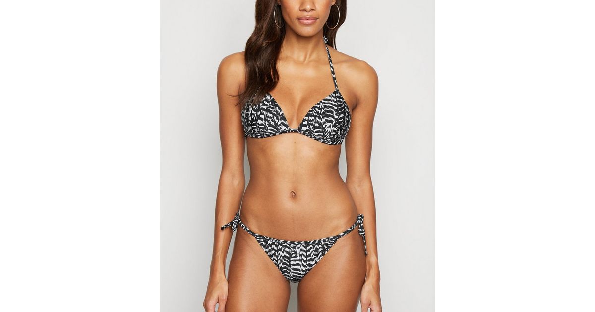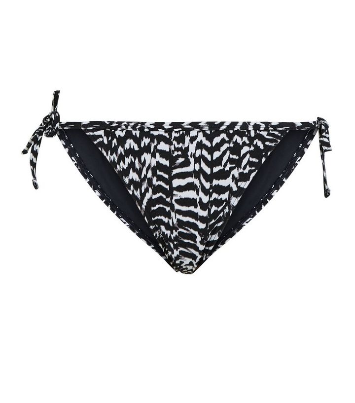Schwarze Bikinihose Zum Seitlichen Binden Mit Zebramuster New Look
