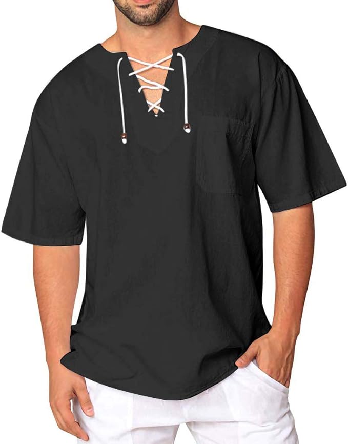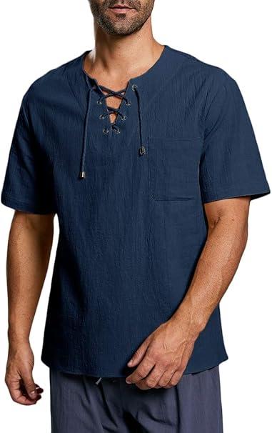 Celucke Herren Leinenhemd Yoga Shirt Mittelalter Kurzarm V Ausschnitt Mit Schnurung Leinen T Shirts Manner Vintage Fischerhemden Sommer Freizeithemd Leichte Bequem Atmungsaktives Amazon De Bekleidung