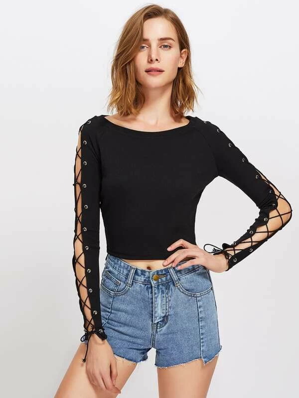 Eyelet Lace Up Sleeve T Shirt For Sale Australia New Collection Online Shein Australia