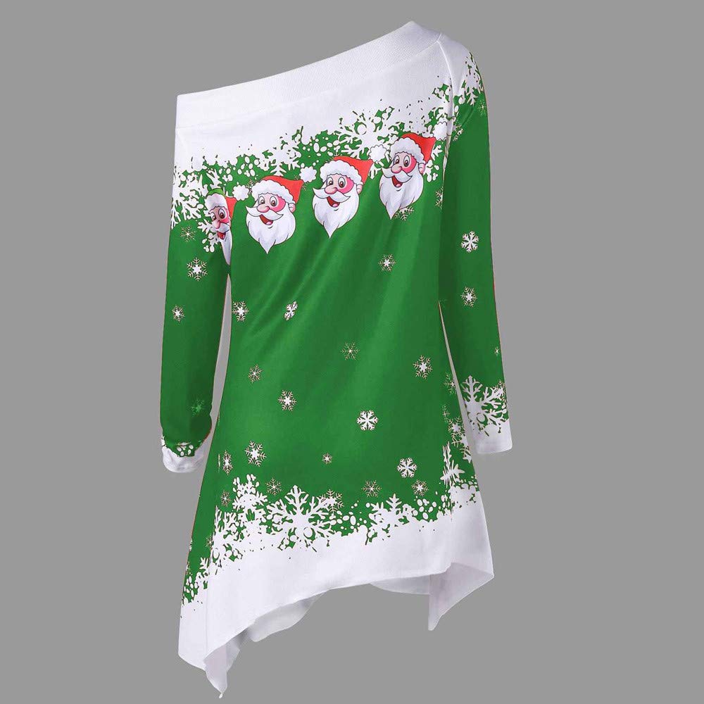 Weihnachten Kleid Damen Partykleider Elegant Weihnachtskleid Frauen Mode Retro Patchwork Knielang Langarm Schneeflocke Skew Neck Abendkleid