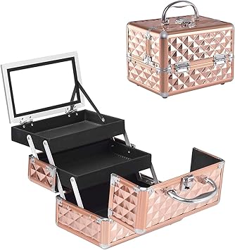 Goplus Kosmetikkoffer Beauty Case Schminkkoffer Make Up Box Friseurkoffer Kosmetikkoffer Reise Multikoffer Etagenkoffer Werkzeugkoffer Fur Make Up Golden Amazon De Bekleidung