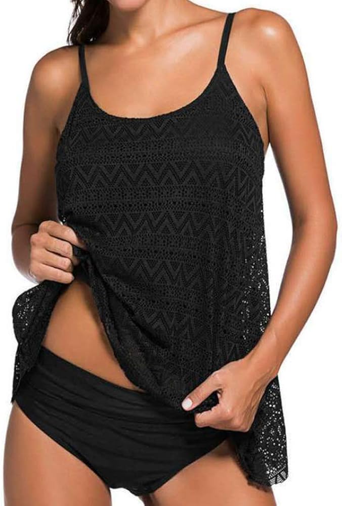 Pacrate Oversize Tankini Damen Schwarz Spitze Sling Bikini Top Bandeau Push Up Gepolsterte Badeanzug Tankini Damen Grosse Grosse