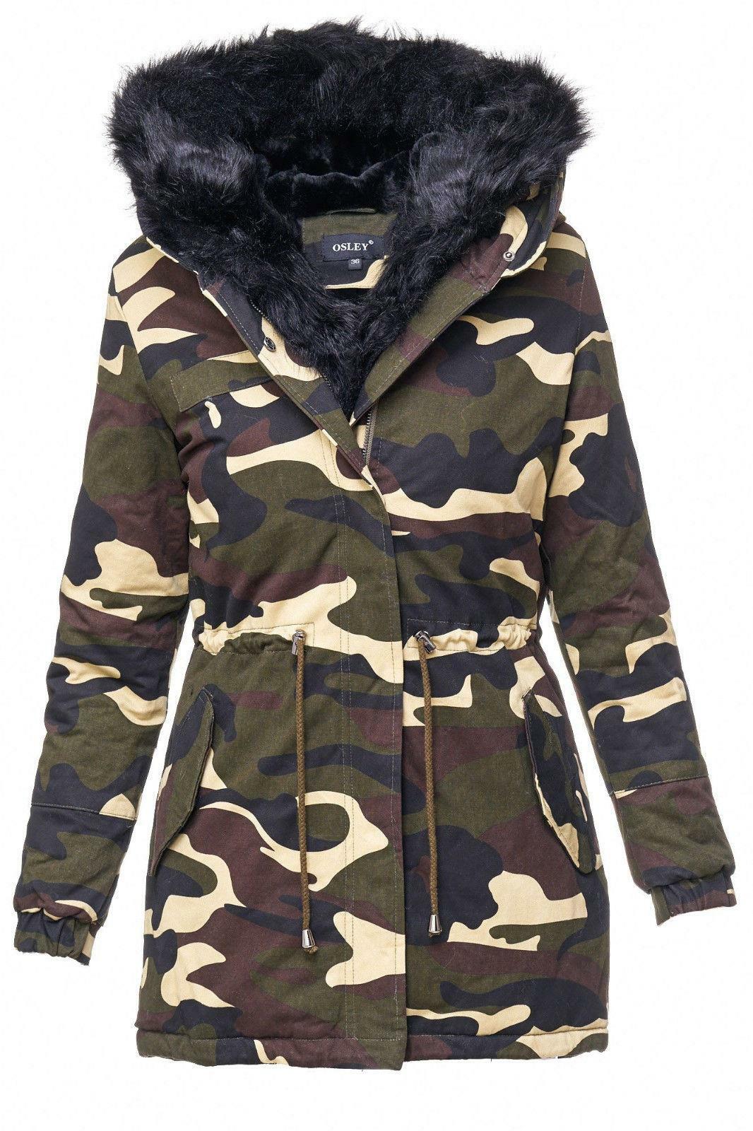 Damen Winter Jacke Parka Mit Kunstfell Pelz Warmer Mantel Camouflage Bonbon Rosa Women S Coats Jackets Waistcoats