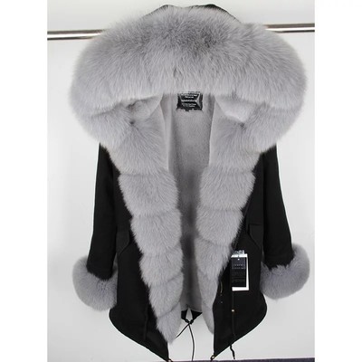 Echtfell Parka Mit Abnehmbaren Xxl Silberfuchs Pelzkragen Und Innenfell Aus Kaninfell Pelzchen Mode