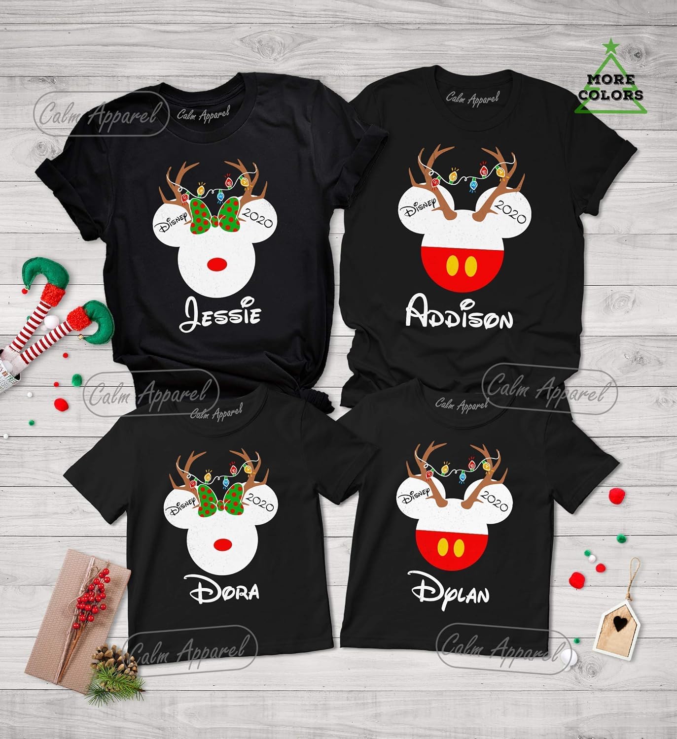 Christmas Family Shirts Matching Minnie Mouse Tee Xmas Holiday Gifts Long Sleeve Graphic T Shirt Personalized Mom Dad Youth Kids Pajama Tops Women T Shirts