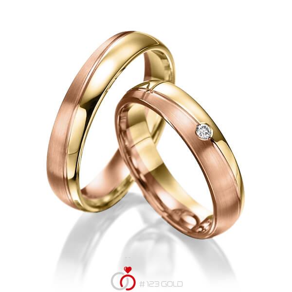 Paar Bicolor Trauringe Eheringe In Gelbgold 585 Rotgold 585 Mit Zus 0 03 Ct Brillant Tw Si Von Acredo S 1105 17