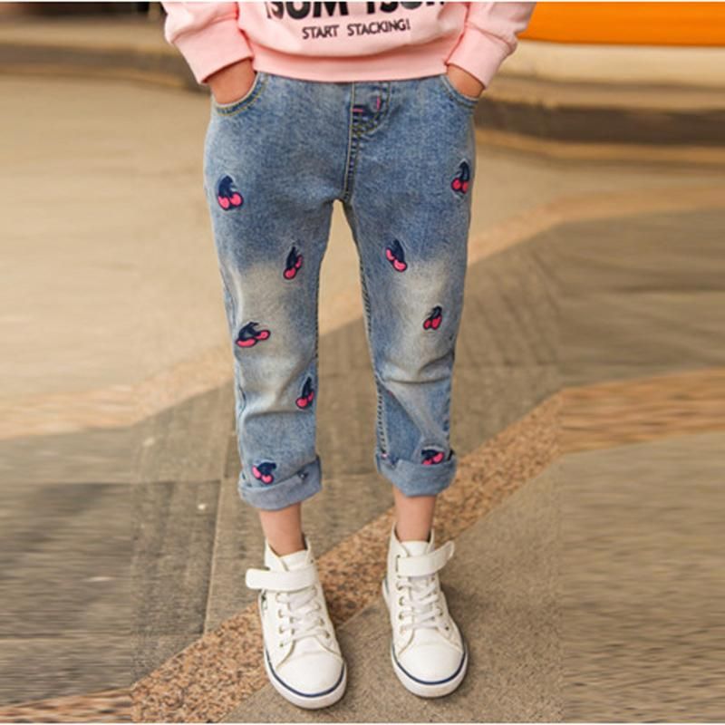 Lovely Girls Jeans Cherry Pattern Casual Kids Jeans For Girls 3 4 5 6 7 8 9 10 11 12 Year Children Pants Toddlers Teens Trousers Cheap Boy Jeans Kids Wear Jeans From Love9love 25 33 Dhgate Com