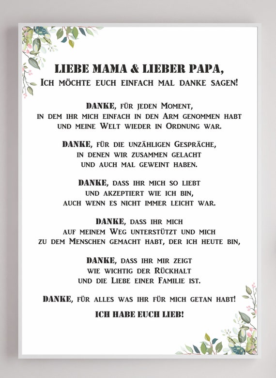 Liebe Mama Lieber Papa Ich Gratuliere Euch Zu Mei Author erbetasitespostgazettecom Subject Liebe Mama Lieber Papa Ich Gratuliere Euch Zu Mei Keywords liebe,mama,lieber,papa,ich,gratuliere,euch,zu,mei Created Date 1/14/21 PM. "Liebe Mama, lieber Papa, Danke, dass Ihr mich mein ganzes Leben lang begleitet habt und zu mir gestanden habt, in guten wie in schlechten Zeiten Danke, dass Ihr mir zugehört habt und mich ertragen habt, als ich anstrengend war Es ist schon viel zu lange überfällig, daher noch einmal Danke!" "Von Anfang an Und bis heute Bin ich Durch Eure. Lieber Mama, lieber Papa, bitte behaltet diesen Brief von mir, damit ihr ihn immer wieder lesen könnt, wenn es mal schwierig wird und ihr euch schlecht fühlt.