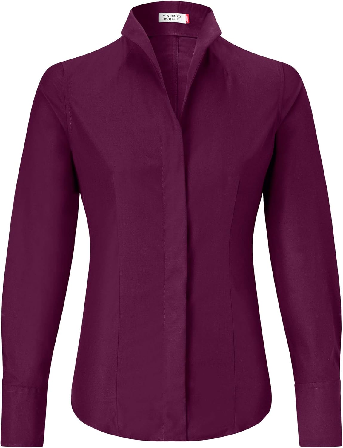 Vincenzo Boretti Damen Bluse Mit Kelchkragen Leicht Tailliert 100 Baumwolle Bugelleicht Langarm Hemdbluse Mit Stehkragen Elegant Festlich Auch Fur Business Amazon De Bekleidung