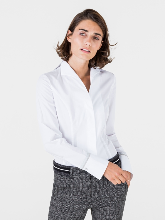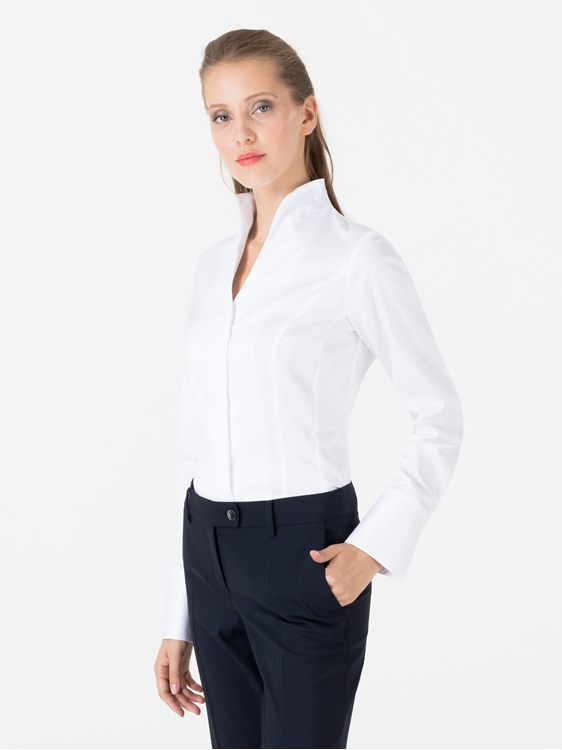 Extraglatt Bluse Kelchkragen Weiss Walbusch