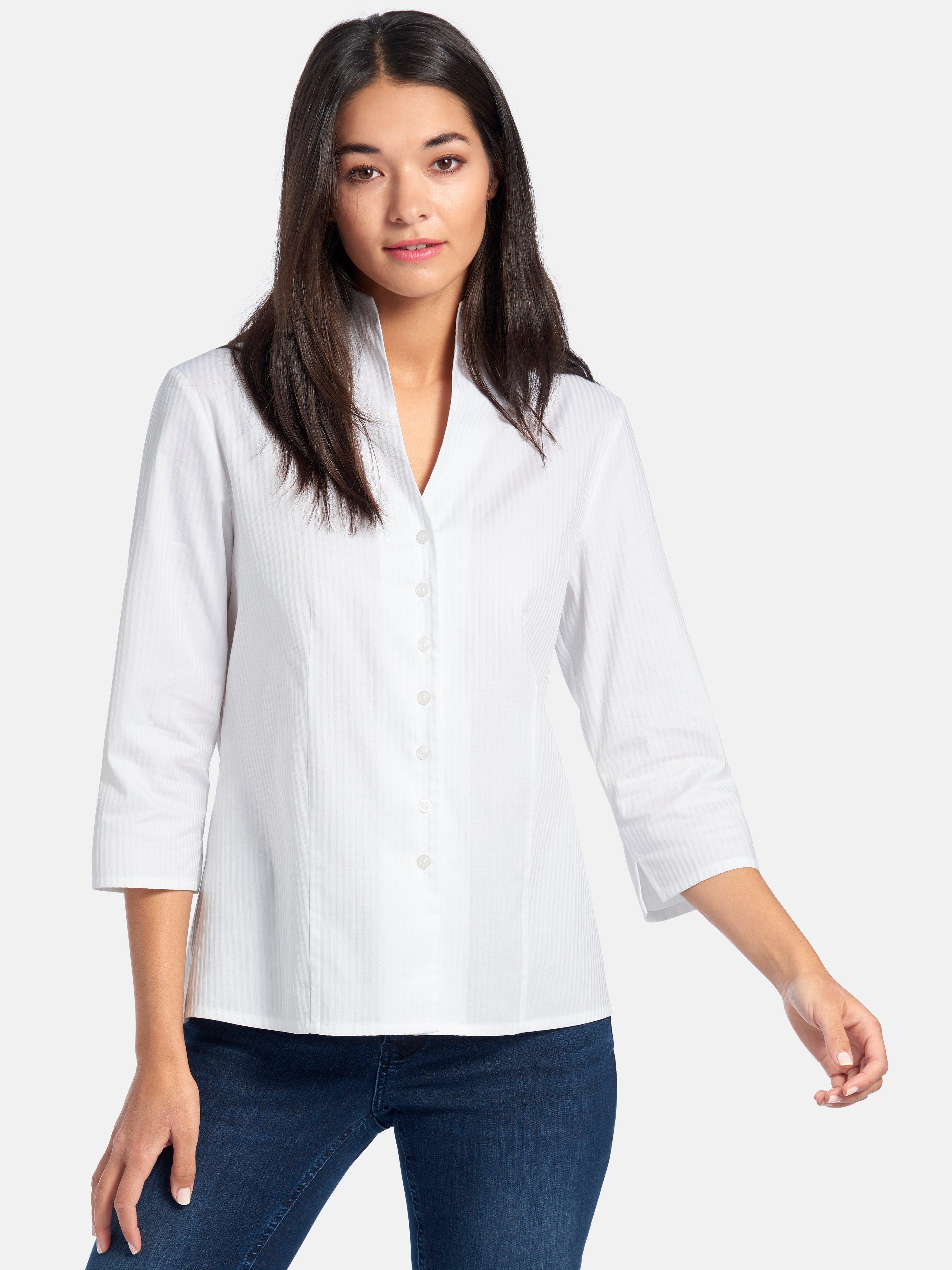 Eterna Comfort Fit Bluse 3 4 Arm Kelchkragen Punktestruktur Weiss