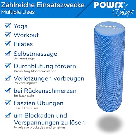 Powrx Yoga Rolle Pilates Rolle Schaumstoff Rolle Foam Roller Faszien Training Selbstmassagerolle 45 Cm Oder 90 Cm X 15 Cm Blau Lila Pink Blau 45 X 15 Cm Amazon De Sport Freizeit