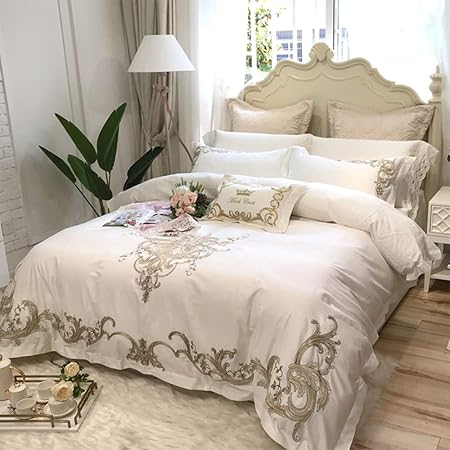 Lithapp Bettwasche Set Hochwertige Baumwolle Stickerei 4 Satze Baumwolle Weisse Bettwasche Einfach 60 Langstapelige Baumwolle Gold M Amazon De Kuche Haushalt