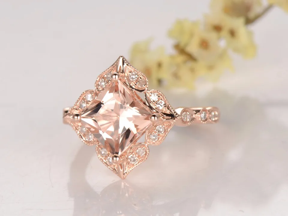 Myray Rosa Morganit Verlobungsring 14 Karat Gold 8mm Prinzessin Cut Stein Diamant Band Braut Hochzeit Ring Edelstein Ring Morganite Engagement Ring Ring Ringdiamond Gemstone Ring Aliexpress