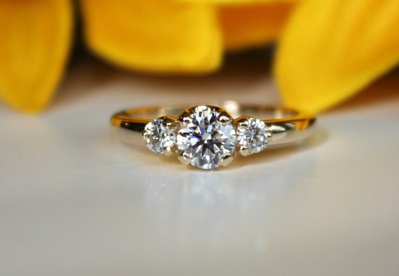 3 Stein Moissanite Verlobungsring Gelb Gold 3 Stein Ring Etsy