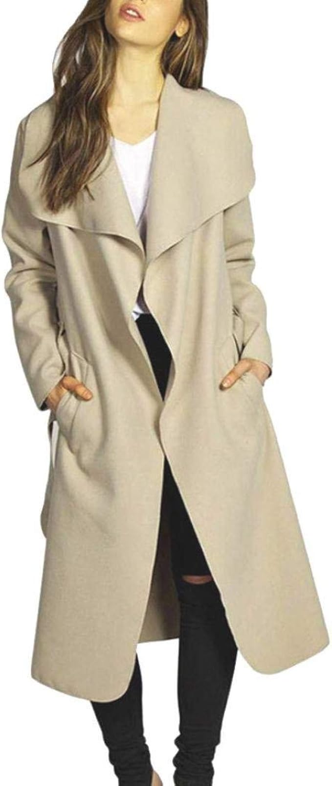 Ubergangsmantel Damen Fashion Elegant Longsleeve Offener Mantel Lang Mit Gurtel Amazon De Bekleidung