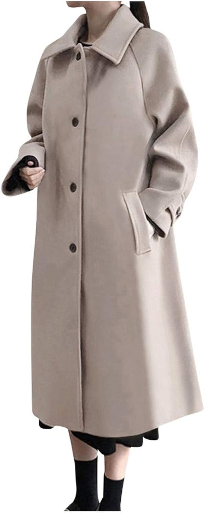 Hanomes Damen Manteldamen Mode Lange Strickjacke Wollmantel Casual Lose Mantel Einfarbig Jacket Parka Mantel S Damen Trenchcoat Wintermantel Damen Mantel Jacke