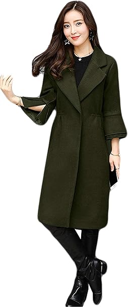 Ubergangsmantel Damen Lang Elegante Revers Trompetenarmel Mantel Schlank Normallacks Fashion Freizeit Kleidung Button Trenchcoat Outerwear Herbst Amazon De Bekleidung