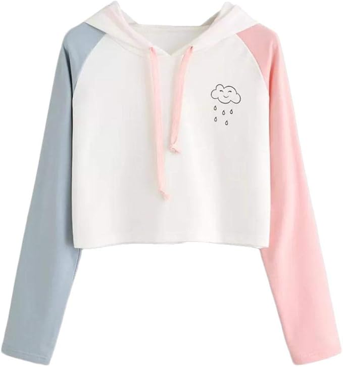Longra Madchen Frauen Kontrastfarbe Pulli Pullover Winterpullover Pullunder Wolke Sweatshirt Kapuzenpulli Top Hoodies Damen Weiss Cropped Kapuzenpullover Oversize Sport Pullover Amazon De Bekleidung