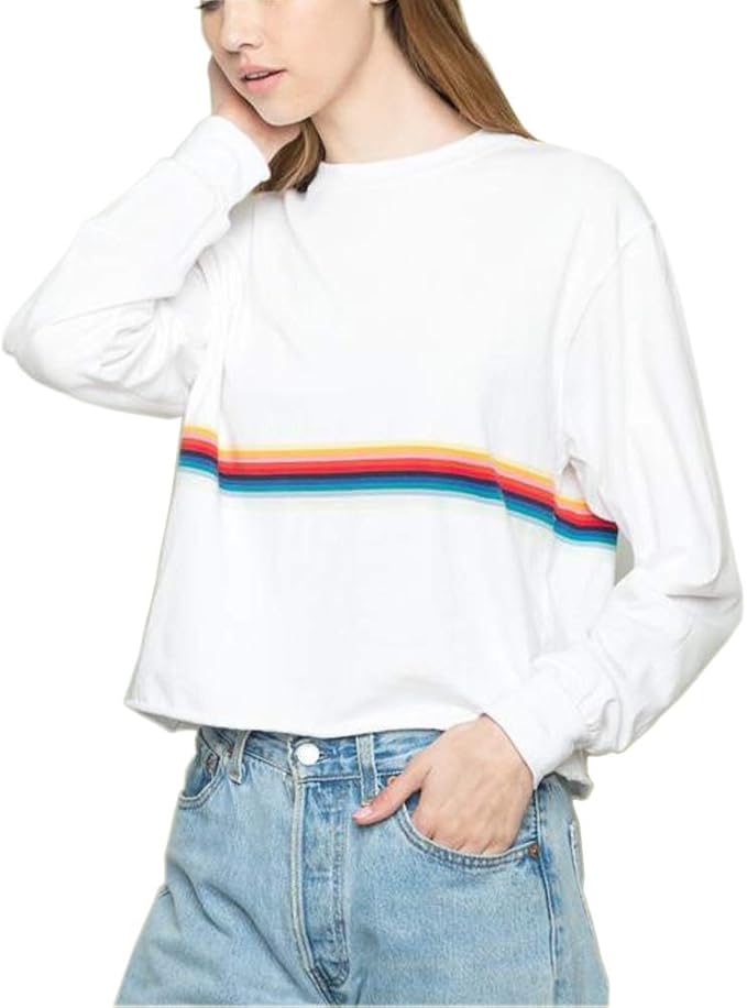 Regenbogen Gestreift Sweatshirts Damen Beilaufig Weisse Bauchfrei Langarmshirt Pullover Pullis Frauen Teenager Madchen Amazon De Bekleidung