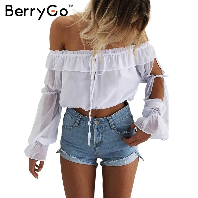 Berrygo Kurze Ruschen Chiffon Bluse Shirt Frauen Sommer Crop Tops Aus Shouder Weisse Bluse Weibliche Weihnachten Aushohlen Blusas Blouse Saree Blouse Greenshirts Types Aliexpress