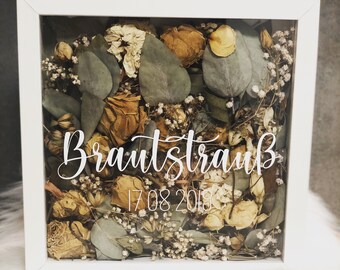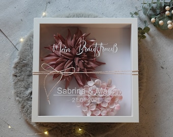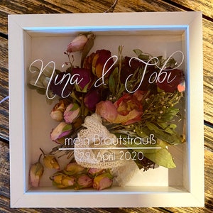 Getrockneter Brautstrauss Im Bilderrahmen Hochzeitserinnerung Brautstrauss Schriftzug