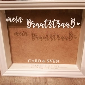 Der Aufkleber wird aus einer Vinylfolie geplottet und enthält sowohl die Überschrift "Mein Brautstrauß" als auch Eure Namen sowie das Hochzeitsdatum und Linie mit Herzchen (siehe Bild) Hinweis Die farbliche Darstellung der Aufdrucke kann je nach Browser und Monitoreinstellungen variieren. Brautstrauß Aufkleber, Bilderrahmen Brautstrauß, Aufkleber Bilderrahmen, Hochzeit Aufkleber, Brautstrauss trocknen, Brautstrauss Rahmen diezauberinvonplott Aus dem Shop diezauberinvonplott 5 von 5 Sternen (446) 446 Bewertungen ab 7,90. Du hast dich vielleicht sogar schon für diesen bekannten Rahmen entschieden oder dir gefällt es super, aber dir fehlt noch die persönliche Note?.