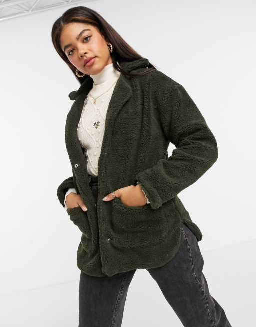 New Look Longline Mantel Aus Teddyfell In Hellgrun Evesham Nj