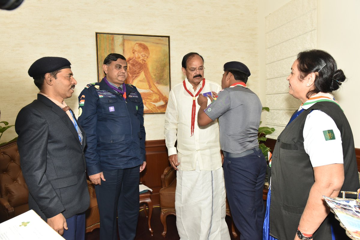 Vice President Of India Members Of Bharat Scouts Guides Pinning Flag To Me On Their Flag Day In New Delhi Today