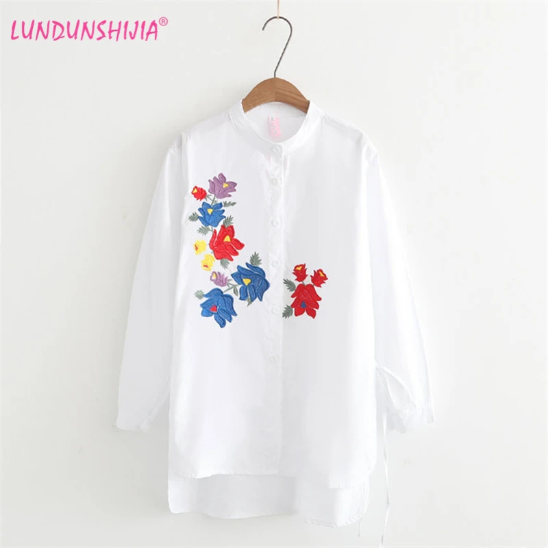 Lundunshijia Frauen Bluse Elegante Blumen Stickerei Lange Stil Shirts Volle Baumwolle Langarm Weisse Bluse Stehkragen Blusas Blusas Style Stand Collarwhite Blouse Aliexpress