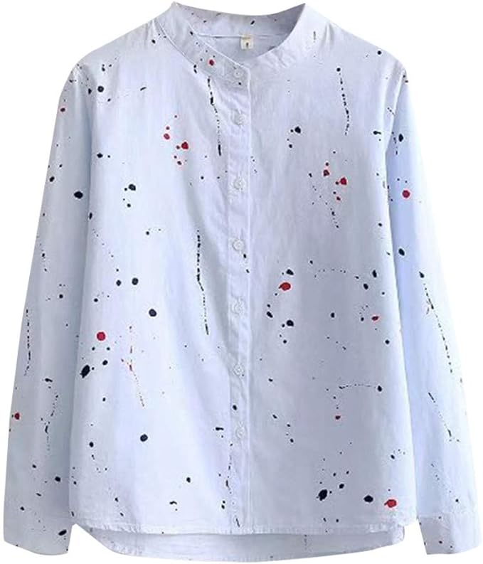 Blusen Tops Shirts Damen Mode Beilaufig Knopf Stehkragen Langarm Baumwolle Bluse T Shirt Hemd Tops Kleidung Accessoires Sticisce Sredisce Si