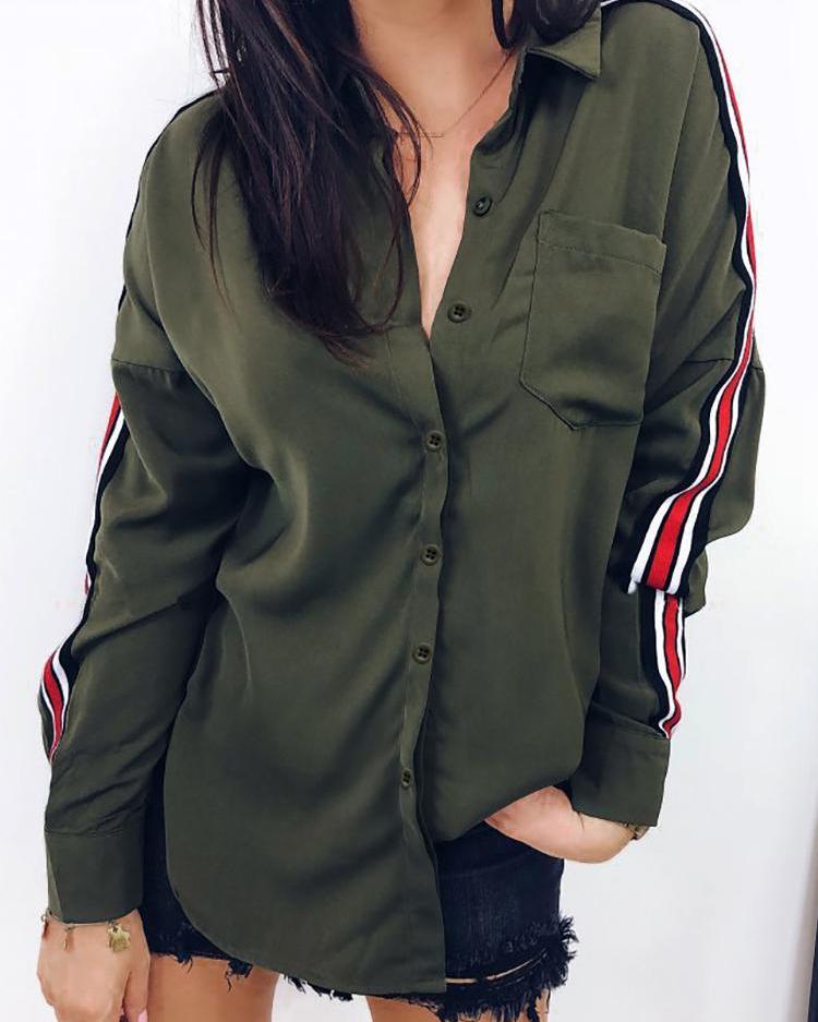 Bunt Gestreiftes Tape Pocket Design Shirt