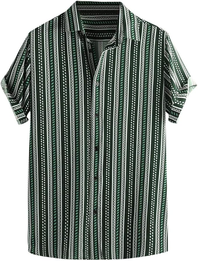 Doad T Shirt Herren Freizeithemd Bunt Gestreift Vintage Hawaii Stil Kurzarmelig Lose Knopfe Grun Gross Amazon De Bekleidung