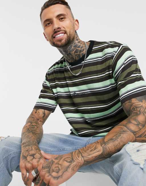 Mennace Grun Bunt Gestreiftes T Shirt Asos