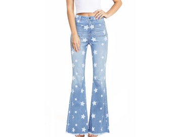 Star Print Super Flare Jeans Medium Denim Southern Fashion Boutique Bliss