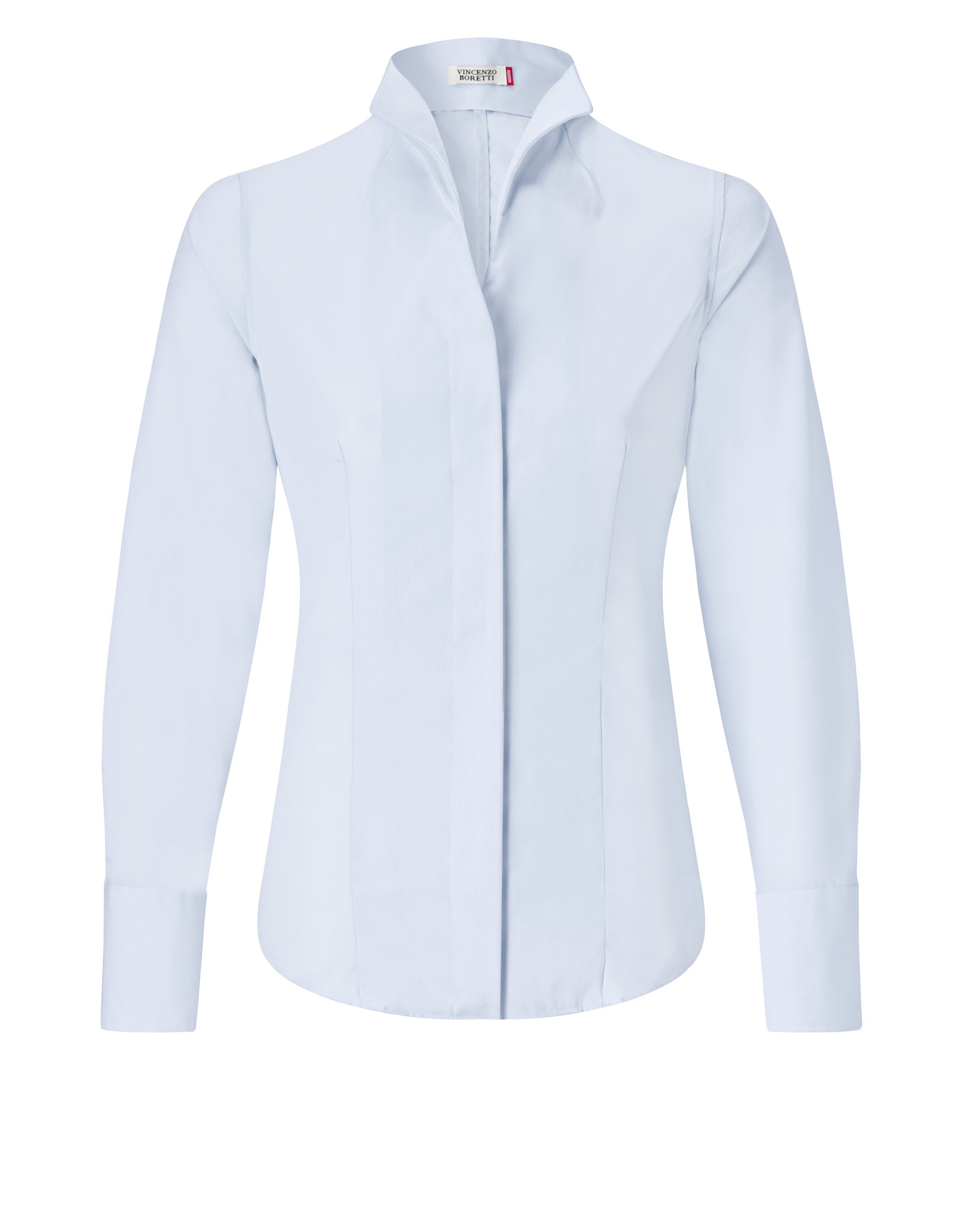 Vincenzo Boretti Damen Bluse Mit Kelchkragen Leicht Tailliert 100 Baumwolle Bugelleicht Langarm Hemdbluse Mit Stehkragen Elegant Festlich Auch Fur Business Amazon De Bekleidung