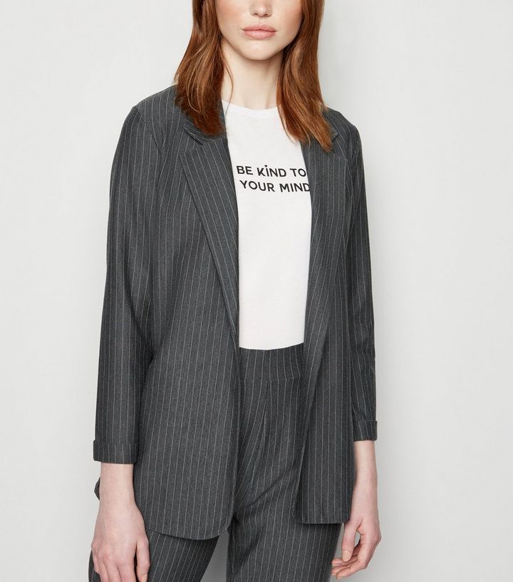 Petite Grauer Langer Jersey Blazer Mit Nadelstreifen New Look