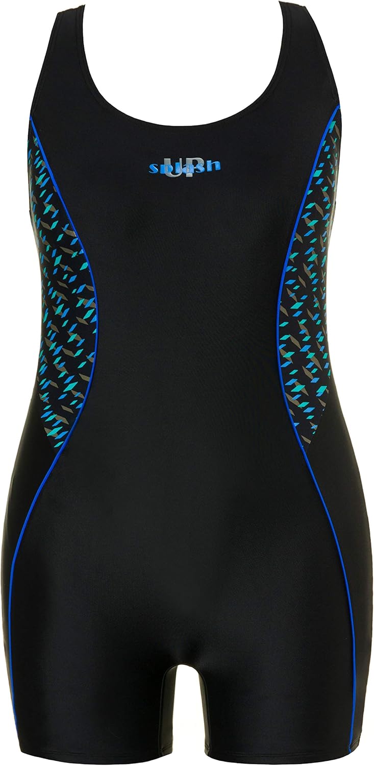 Damen Badeanzug Mit Bein Schwimmanzug Mit Schwimmerrucken Modell M0 Grosse Grossen 44 Schwarz Blau Amazon De Bekleidung
