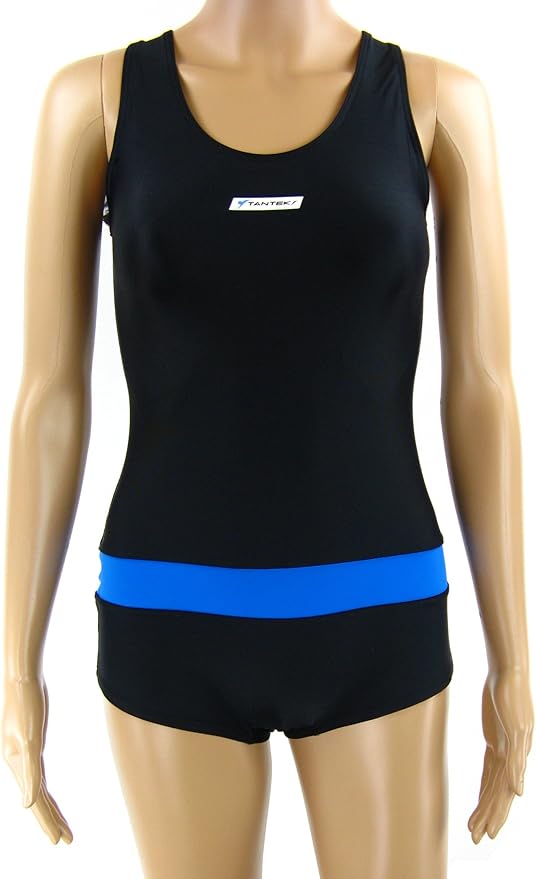 Damen Badeanzug Mit Bein Schwimmanzug Mit Schwimmerrucken Modell M0 Grosse Grossen 46 Schwarz Blau Amazon De Bekleidung