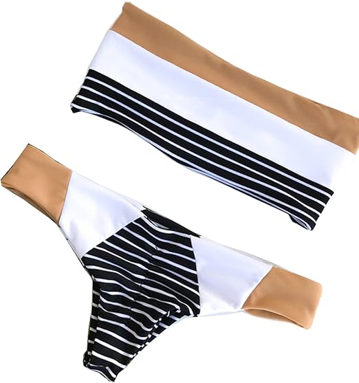 Elapsy Damen Bikini Set Mit Neckholder Tragerlos Gestreift Bandeau Stil Mit Unterteil Zweiteiliger Badeanzuge Gr 46 48 Mehrfarbig Jetzt Unschlagbar Gunstig Shopping24 De