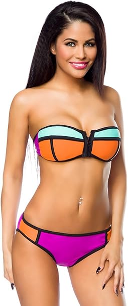 Yourdesignerz Neopren Bandeau Bikini Bunt Mit Soft Cups Tragerlos Mit Reissverschluss 36 Amazon De Bekleidung