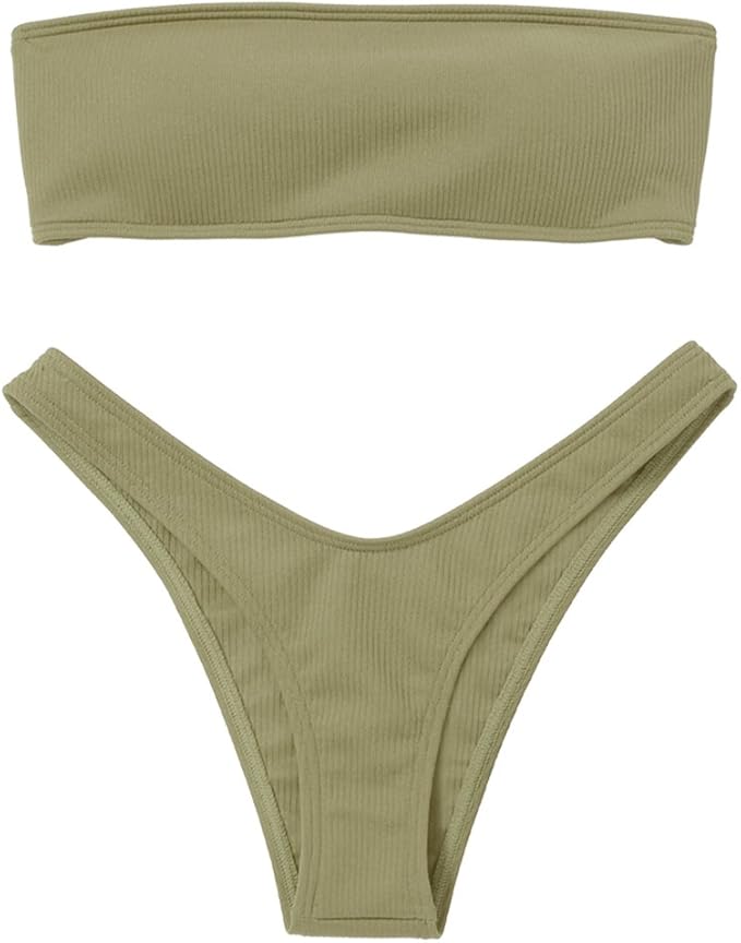 Amazon Com Zaful Women S Solid High Cut Ribbed Bandeau Bikini Set Sexy Padded Wire Free Back Lace Up Bathing Suit Clothing
