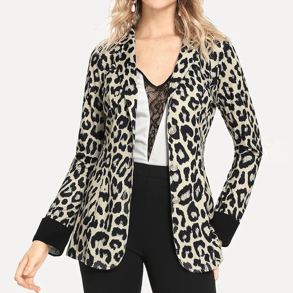 19 Women England Style Leopard Print Blazer Pockets Notched Collar Long Sleeve Coat Female Outerwear Blazer Damen Z0529 Blazers Aliexpress