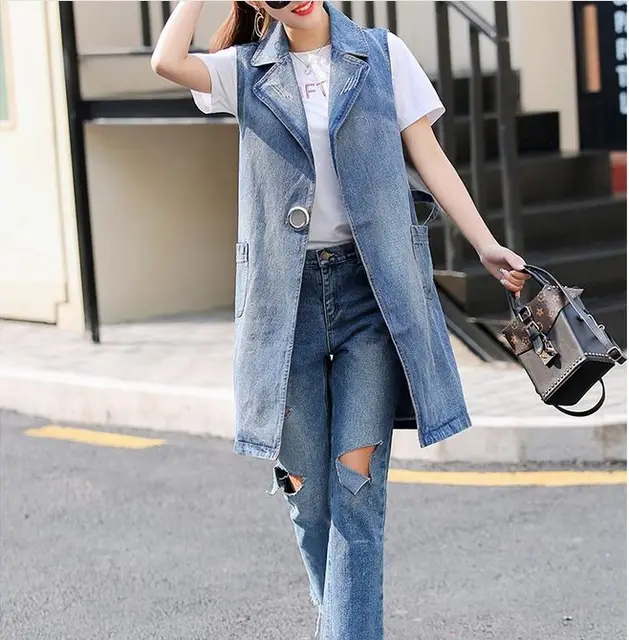 Women Denim Blazer Vest 17 New Plus Size Sleeveless Cardigan Blazer Vest Casual Ladies Long Vest Jackets G Long Vest Jacket Ladies Long Vestslong Vest Aliexpress