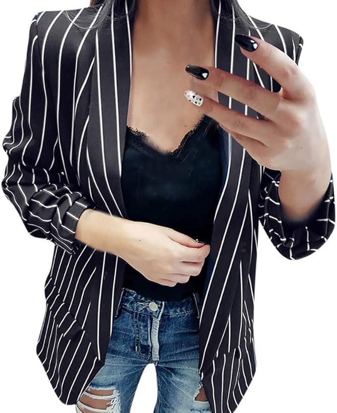 Iybuia Office Ladies Fall Women Long Sleeve Striped Stylish Duster Blazer Jacket Coat At Amazon Women S Clothing Store