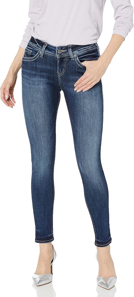 Silver Jeans Damen Suki Curvy Fit Mid Rise Super Skinny Jeans Amazon De Bekleidung