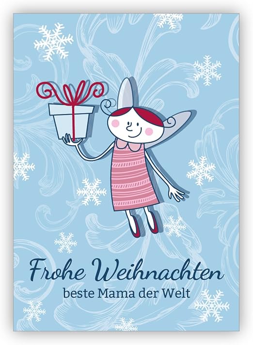1 Weihnachtsgruss Niedliche Weihnachtskarte Mit Geschenke Engel Frohe Weihnachten Beste Mama Der Welt Als Festliche Grusskarte Zum Jahreswechsel Fur Familie Und Firma Amazon De Burobedarf Schreibwaren