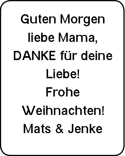 FROHE WEIHNACHTEN Ganz liebe Grüße und frohe Weihnachten Melanie bin Mama von zwei Mädels (12 J und 8 J) Ich freue mich sehr über Deinen Besuch und Deinen Kommentar!. Mama, weine nicht an Weihnacht, Denn Du hast ja einen Sohn, der hat Dir auch was mitgebracht, es liegt unter dem Christbaum schon — Frohe Weihnachten, liebe Mutti, nimm die Schürze ab und setz’ Dich hin, frohe Weihnachten lieber Vati, ach, bin ich froh, dass zuhause ich bin —. Rangliste unserer qualitativsten Frohe weihnachten liebe mama Was sonstige Leute zu Frohe weihnachten liebe mama sagen In den meisten Fällen überwiegen die Aussagen von Konsumenten, die den Artikel ohne Bedenken für gut befinden Auf der anderen Seite hört man gelegentlich auch Geschichten, die von kleinerem Gelingen erzählen, aber im.