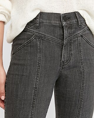 High Waisted Hyper Stretch Black Seamed Ankle Skinny Jeans Express