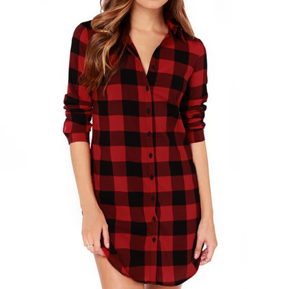 Hotouch Damen Langarm Rot Kariert Hemd Bluse Kleid Top Rot Schwarz Grosse L Amazon De Bekleidung